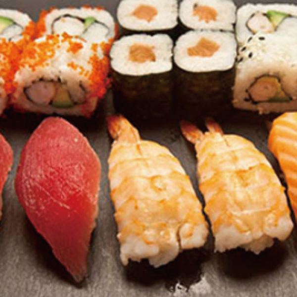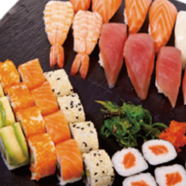 4 sashimi de salmón 4 sashimi de atún 6 maki de salmón 6 maki de atún 4 uramaki de salnón 4 california roll 4 sésamo roll 4 passion roll