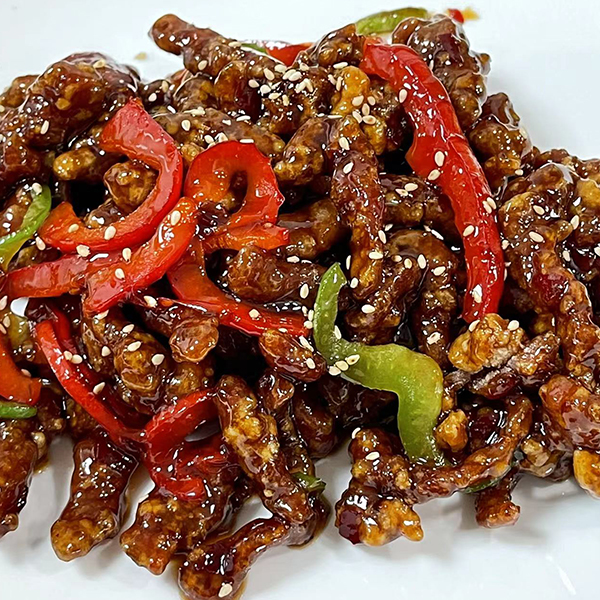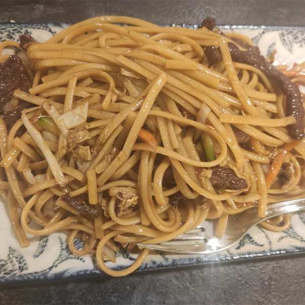 Ternera salteada, verduras y salsa hoisin. Contiene alérgenos: gluten, soja.
