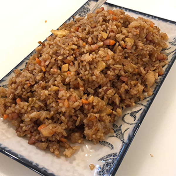 Arroz con huevo, soja japonesa, trocitos de bambu bacon y zanahoria
